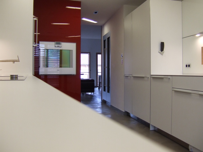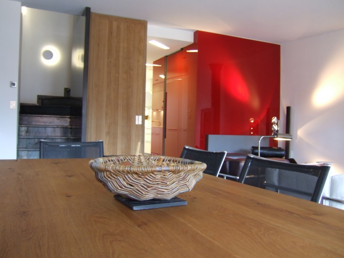 L'objectif était de mettre en scène les volumes en créant des portes magistrales en chêne et faire que le lumière pénètre harmonieusement dans tous les espaces.